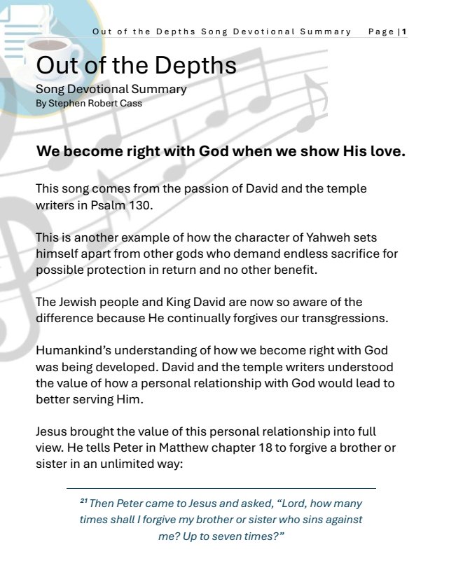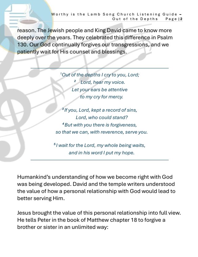 Psalm 130 – 3If you, Lord, kept a record of sins, Lord, who could stand? But with you there is forgiveness, so that we can, with reverence, serve you.