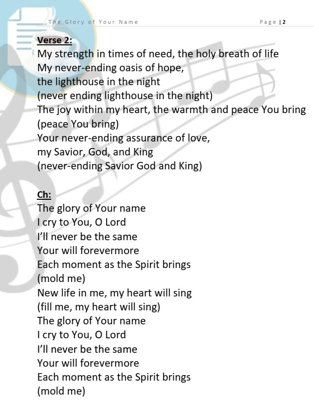 “Each moment as the Spirit brings new life in me my heart will sing the glory of Your name”